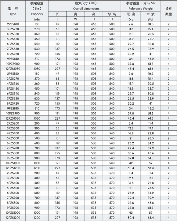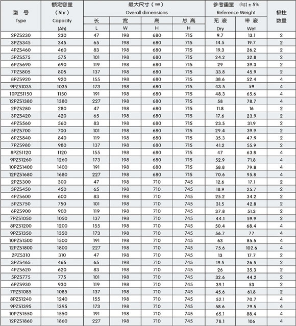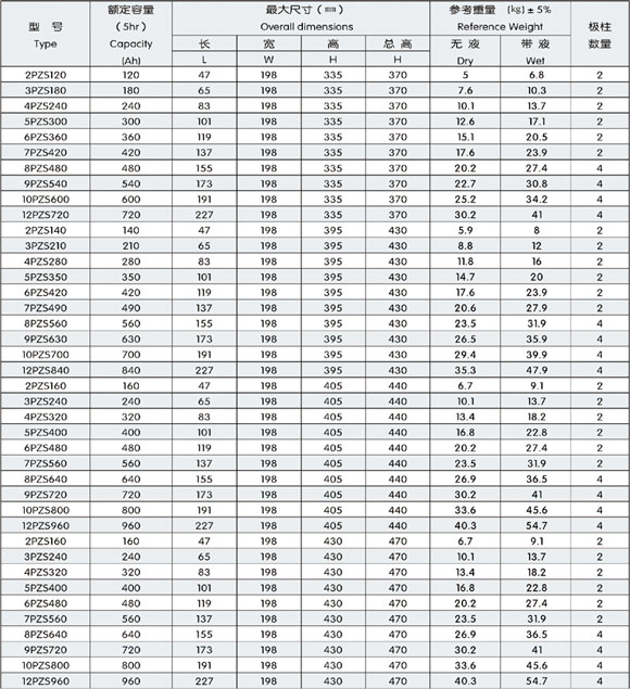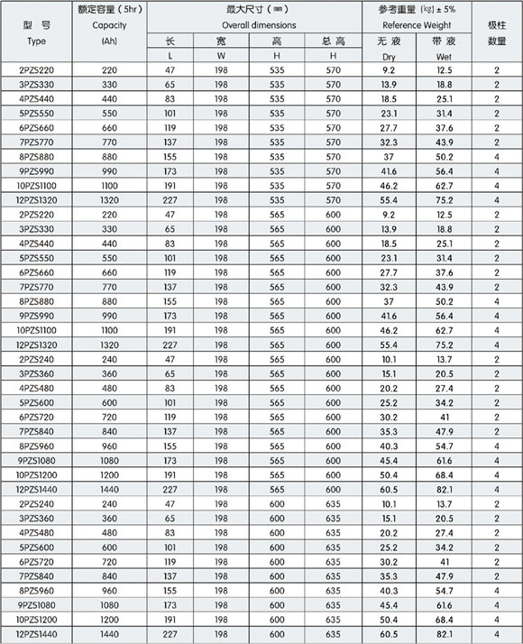 2V198寬PZS牽引用鉛酸蓄電池